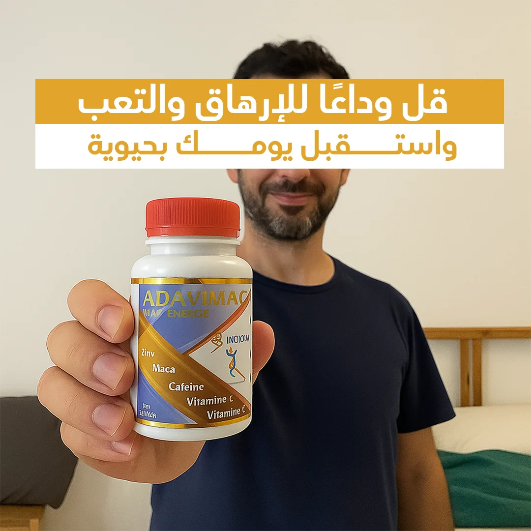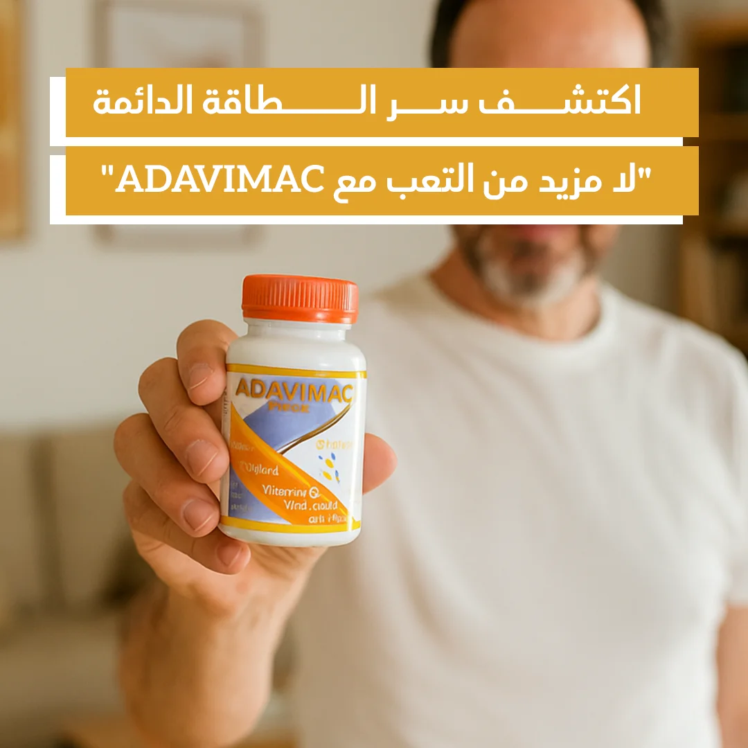 مع ADAVIMAC، لن تعاني مجدداً من التعب أو ضعف التركيز أو الرغبة الجنسية المتراجعة. منتجنا الطبيعي المصنوع من مكونات عضوية مدعومة علمياً يمنحك طاقة مستدامة، مناعة أقوى، وأداءً جسدياً وذهنياً