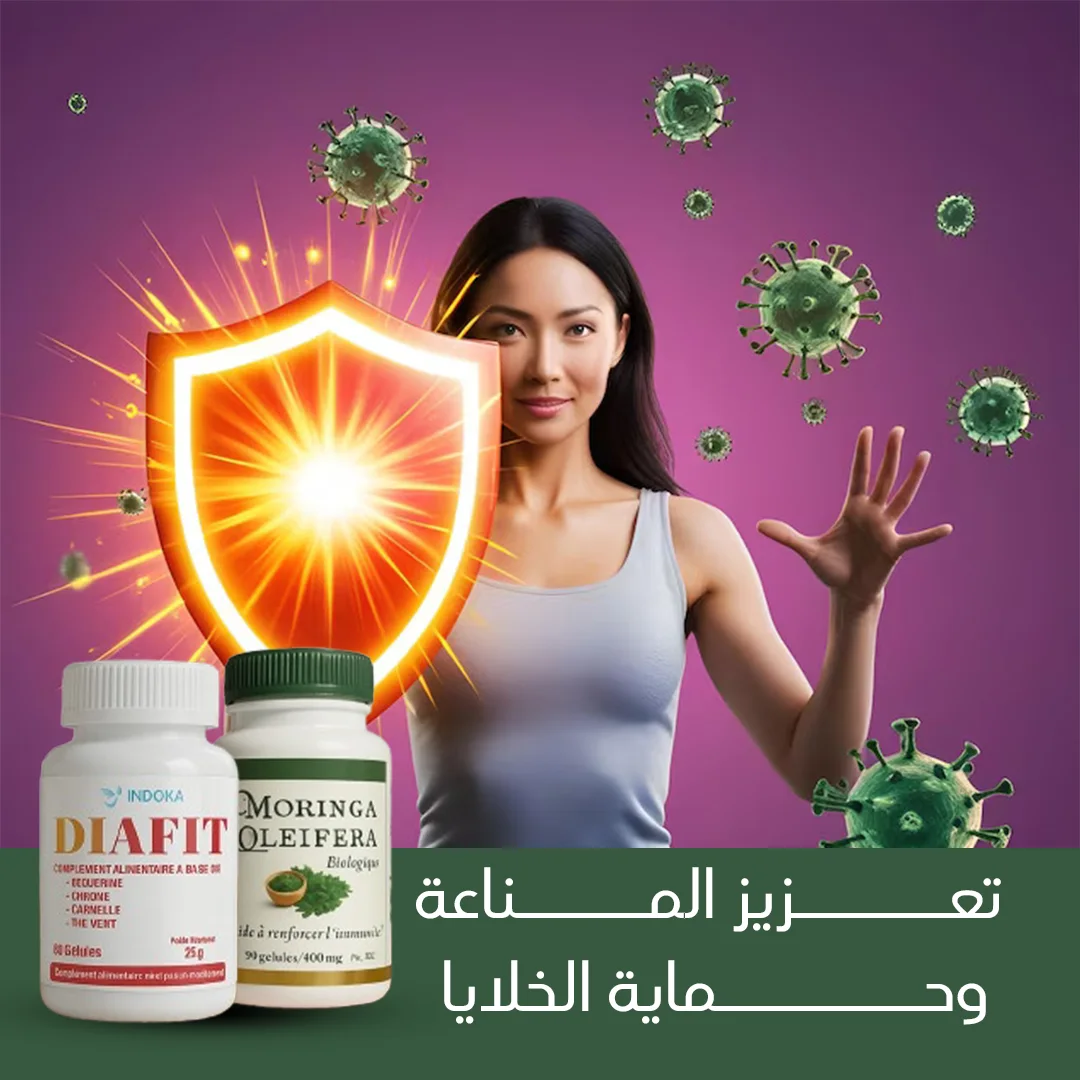 تحتوي المورينغا على مضادات أكسدة قوية تحمي جسمك من الالتهابات والأضرار التأكسدية، بينما يدعم ديافيت وظائف الكبد لإزالة السموم، مما يقوي مناعتك ويحسن صحتك العامة